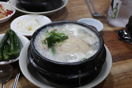 Read more유명해서 처음 먹어봤는데 닭 크기도 크고 안에 찰밥도 꽉 차있어서 하나 다 먹으면 엄청 배불러요. 국물도 뽀얗고 깔끔해요. 닭 비린내도 없고 살도 많아고 깍두기랑 같이 먹으면 개운해요. 깍두기는 푹 익은 맛은 아니었어요. 인삼주도 주는데 소주잔에 한 잔 나오는데 저는 그냥 마셨지만 삼계탕에 넣어 먹으면 맛있대요. 주말 저녁에 갔는데 대기시간 없이 바로 들어갔고 삼계탕도 금방 나왔어요....