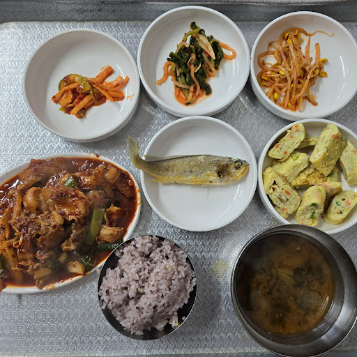 Read more이 지역 다니는 택시 기사님들(현지인이자 최고의 미식가)이 강력히 추천하며 모르는 사람이 없는 맛집. 2명이 가야만 함. 그 이유는 맛있는 양념고기볶음(제육이라고 불림) 요리가 2인분 이상 주문을 받기 때문. 스팸, 김치등을 넣고 끓인 부대찌개나 한국의 독특한 향을 담은 청국장 같은 메뉴들이 있는데, 자신의 취향껏 도전하기를 바람. 좋은점 : 쌀밥이 무제한으로 제공됩니다. 반찬 또한 무제한 입니다. 대신에, 아까우니까 남기지 말도록 합니다. 그리고, 굉장히 음식이 맛있습니다. 아쉬운 점 : 반찬을 추가하고 싶을때, 직접 서빙해야합니다. 밥 또한 마찬가지 입니다. 주요 식사시간에는 손님이 많아 줄을 서게 될 가능성이 매우 높습니다. 대체로, 12시 이전, 13시 30분 이후에는 줄이 적습니다.