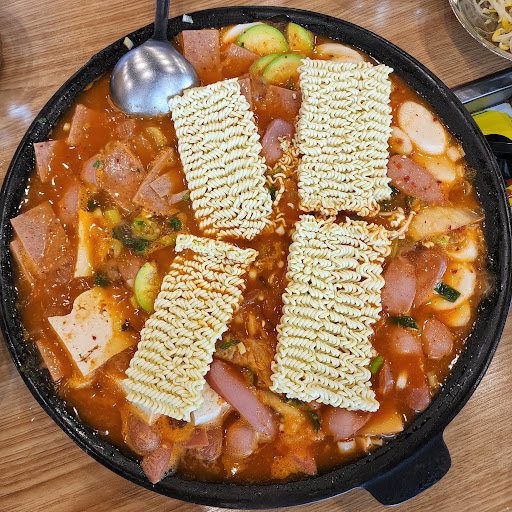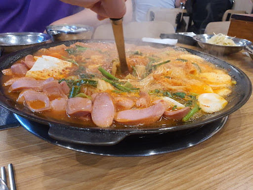 금방 보글보글 끓게됩니다. 부대찌개가 느끼하지도, 텁텁하지도 않은 국물에 푸짐한 건더기가 일품입니다. 라면사리는 꼭 추가하시면 되겠습니다. 공기밥은 그냥 계속 주시니까 양껏 드셔도 됩니다.