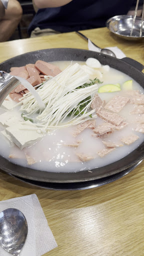 일단 음식 주문을 하면 콩나물과 김치, 동치미가 나오는데 이 콩나물이 마약입니다. 특별한건 잘 모르겠는데 콩나물무침을 먹다보면 참기름 맛이 나면서 계속 집어먹게 되는데 이게 중독됩니다. 그러다 기름맛에 중독되어 질려질 때 즈음해서 부대찌개가 준비되어 나옵니다.