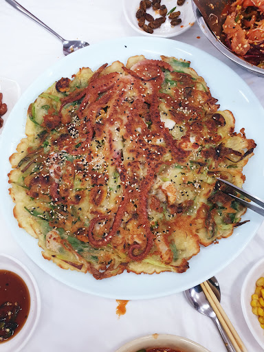 낙지해물파전에 낙지한마리가 No커팅으로 들어가요! 정말 인상적임! 무지개물회(소)는 맛을 일단 눈으로 보는 재미가 있어요!