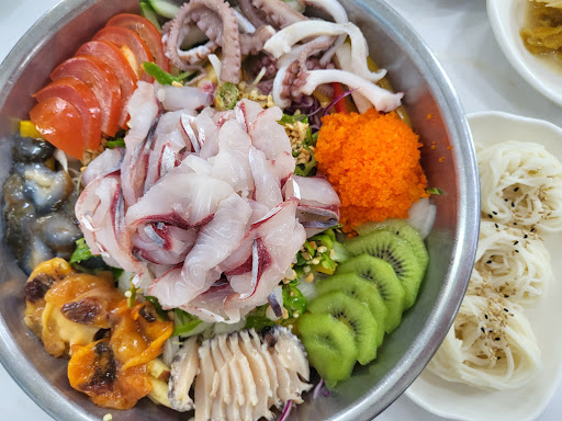 Read more#물회 20,000 #해물칼국수 10,000 = 주문~ 생각보다 물회양념맛 매콤하고 좋습니다. 땅콩가루가 들어가서 고소한 감칠맛추가~ 알러지 있는분들은 주문시 미리 말씀해주시면 될듯합니다 칼국수 국물 good! 칼국수 조개 싱싱하고 맛좋아요.김치도 맛있습니다. 아쉬운건,일하시는 분들이 불친절하신게 아닌데,너무 바쁘셔서 그때그때 응대를 다 못해주시는거...