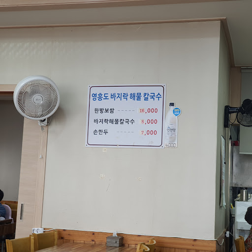 Read more영흥도에 들르셨다면 꼭 드셔보셔야 할 음식, 바지락이 듬뿍 들어간 바지락 해물칼국수를 드실 수 있는 맛집입니다. 바다와 도로 하나를 끼고 마주보고 있어서 바다에 놀러온 분위기를 느끼면서 식사를 할 수 있습니다. 가격은 1인분 8천원으로 적당한 가격이며 단순한 요리이지만 맛이 깔끔하고 시원했습니다. 반찬으로 나오는 겉절이와 김치가 특히 맛있어서 칼국수와 매우 잘 어울립니다. 주차 공간은 건물 앞과 옆으로 넓게 마련되어 있습니다. 유아 의자 마련되어 유아 동반시에도 문제 없이 이용할 수 있습니다. 서비스가 매우 친절했습니다. 영흥도에 다시 오더라도 식사는...