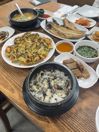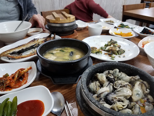 We had oysters over rice, seafood pancake, and fish for breakfast. We were so pleasantly surprised and felt so spoiled from morning. All the side dishes and main dishes were cooked and seasoned perfectly. The people are friendly and down to earth. They seem to have genuine passion for food. When we were eating, the staff were having breakfast too. They were discussing a possible new menu and ingredients that are in season over breakfast. The place opens at 9 am. A great location to eat in and out of Incheon airport. I am guessing taxi rides will cost about $8-$10 from the airport. The food we ordered (described above) cost $33 and was enough to...