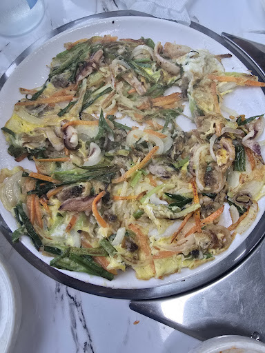 Read more해물파전은 타서 다시해왔는데. 완전 반만한 두께로 종이인줄 착각..김치는 4종류 나왔는데 파김치.무김치 동치미.배추김치는 아예 군냄새나고 시어 꼬부라졌음... 그나마 해물 칼국수는 제가 해물을 워낙 좋아서. 해물 건져 먹었고. ..맛도 평균...다대기는 엄청 매운데. 미원이많이 들어가서 느끼하고 매움..절대. 2번다시. 절대. 이집 은. 안가고. 추천도 안함...진짜 너무 성의없음. 충격은. 손가락으로 탄 부분 햐물파전을 만지면서....
