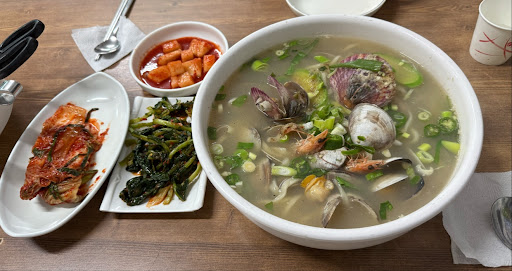 국물을 처음 맛 보았는데 기가 막혔습니다. 염도도 딱 괜찮았고, 조개들의 약간 비릿한 향이 풍부하였으며, 마지막에 청양고추와 후추가 탁 쳐주는 맛이 일품이였습니다. 면은 기성품 같았는데, 저는 개인적으로 기성품 면 좋아합니다. 괜히 수타로 면 만든답시고 별로인 곳이 되게 많았기에 기성품 면을 굉장히 좋아하는지라 면도 몇 젓가락 먹고 사장님께 면 사리 추가 가능하냐고 여쭤보았네요. 해물들이랑 면이랑 같이 끓여내는거라 면 사리 추가는 따로 되지 않는다고 하셨으나 보리밥 한 공기 주신다고 하셔서 넙죽 받았습니다