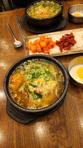 삼산체육관에 배구시합을 보기전 식사하러 방문했습니다. 주변에 식당이 많았지만 따뜻한 국물 찾다가 콩나물집으로 결정했습니다. 남부시장식 콩나물국밥과 기존의 끓이는 콩나물국밥 2종류가 있습니다. 뭔가 느낌이 와서 남부시장식으로 주문했습니다. 적당한 온도에 완전 깔끔한 국물의 콩나물국밥입니다. 국물의 깔끔함을 위해서 계란은 따로 수란 스타일로 나옵니다. 진짜 들어간거라곤 콩나물뿐인데 이상하게 맛이 좋습니다. 엄청 맑은 콩나물국에 밥이 들어간 느낌입니다. 한 그릇 먹고 나니까 개운하다는 느낌이 이제야 알듯합니다. 반찬, 밥, 콩나물, 김 무제한 리필가능합니다. 양 많이 드시는 분은 눈치보지말고 양껏 많이 드세요. 사장님께서 아주 친절합니다. 좋은 곳에서...