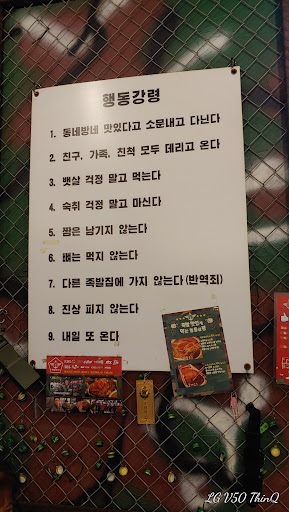 정말로 이색적인 컨셉의 족발집... 컨셉은 우리나라 군대의 컨셉이다... 점원들도 군복을 입고 있으며 여기저기 군대에 다녀온 사람들은 향수마저 느낄수 있을정도로 잘 해놨다. 보통 가게가 잘꾸며지면 맛은 그냥 그닥이거나 맛이 없는 경우가 있는데 여기 족발집은 오늘 들어온 고기만 판매 해서 그런지 맛있다. 군대 갔다온 친구들과 힘께 와도 좋고 연인이 있다면 남자들은 군대 허풍 떨기 딱 좋은 곳이다.