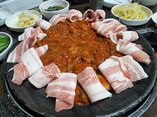 Read more인천 서구 원당동에서 공연을 마치고 팀원들과 함께 검색으로 찾은 '쭈꾸미일당백 본점'에 다녀왔습니다. 자리에 앉아 쭈꾸미 철판구이를 인원수대로 주문했습니다. 가격도 인당 12,000원이라 적당하고(300g) 둥그런 철판 위에 쭈꾸미를 수북이 쌓은 후에 빙둘러서 삼겹살을 올려 나온 모습이 비주얼도 나쁘지 않았습니다. 기본 제공되는 찬은 단촐하지만 정갈하고 맛있습니다. 잠시 끓이다 보면 전체적으로 소스의 색이 진해지는데, 보기엔 안매울 것 같은 비주얼이지만 먹다보면 생각보다 맵습니다. 그런데, 맛있게 매운 맛입니다. 혀끝이나 입주변을 얼얼하게 하는 그런 매운맛이 아니라 칼칼함이 베이스인 매운 맛입니다. 불맛 같은거 없이 맛있는 매운맛이라 계속 손이 가는 맛이라 금새 거의 바닥이 났고 당연히 남은 쭈꾸미양념에 밥을 볶아 달라고 주문했습니다. 매콤한 쭈꾸미양념에 볶은 밥을 깻잎에 싸서 먹으면 깻잎의 향이 더해서 더욱 맛있습니다. 리뷰수도 많고 리뷰점수도 매우 놓은 곳인데 먹어보니 점수 높은 이유가 납득이 가는 곳입니다. 인천 서구 원당동 쪽에 올 일이 있다면 남녀노소 누구에게나...