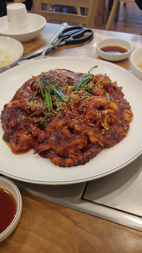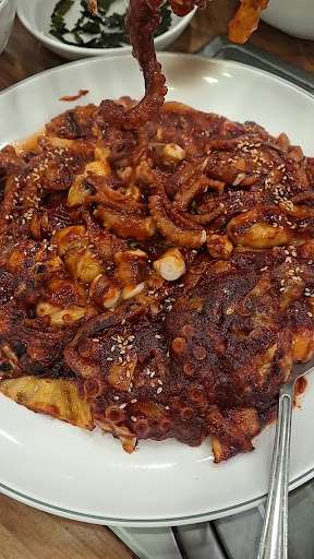 Read more이곳에 처음 온 것이 22년 전? 인 거 같아요. 그때도 오래된 맛집이라고 들었는데...여전히 맛집!!! 낚지덮밥 & 해물파전 맛있개 먹었어요. 주차장은 매장 앞에 10대 정도 주차 가능 1시에 왔는데 주차 여유롭고 매장안에 자리도 여유~ 음식도 주문 들어가면 5분 내로 나오네요. 파전은 조리시간이 좀 더 필요해서 7분정도래요. 추가반찬은 자유롭게 셀프 코너 이용 1인 1메뉴 주문 편안한...