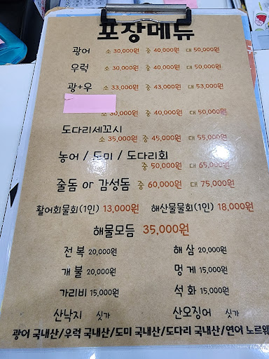 그냥 지역의 일반 동네 횟집으로 생각하고 갔는데...... 생각보다 식재료와 맛이 좋아서 놀랐습니다. 도다리 세꼬시와 쭈꾸미 샤브샤브를 주문을 했는데... 재료가 신선한 만큼 맛도 훌륭했어요. 깜짝 놀랐습니다. 스끼다시로 나오는 음식들도 정성을 충분히 느낄수 있는 맛이었어요..다른 음식점 스끼다시는 그냥...기본으로 나오는 음식으로 맛도 그냥저냥, 신선도도 그냥 저냥했는데...여기는 신선하고 다 맛있었어요. 한가지 바라는 점이 있다면, 이젠 양반다리 하고 앉아서 먹는 시대는 아니잖아요... 테이블석으로 바꾼다면 더 많은 손님들이 올거라고 생각해요. 제가 간 날도 평일 오후였는데, 만석이었습니다. 동네사람들이 더 잘 알고...
