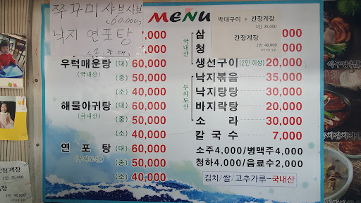 해산물이 너무 신선하고 맛있어요 사장님 손맛이 좋은듯해요 밑반찬으로 나온 멸치볶음과 소라무침이 예술이에요. 생선구이+바지락탕( 2인 2만원)가성비 좋고 생선은 서대구이 고등어구이 나오는데 역시 맛있네용 해물탕과 낙지볶음 우럭매운탕도 기대되서 다음에 또 먹으러 오려구요~ 화장실은 조금 불편하긴하지만 음식맛은 참 좋아용! 혼자만 알고싶은...