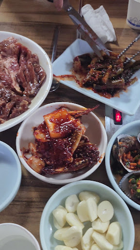Read more맛을 떠나서 일단 깔리는 반찬 갯수가 어마어마함. 술 안주로 끊임없이 나오는 반찬이 매력적이고 갈비 1인분 15000원에 충분히 가성비 좋은집임은 확실함. 특이한 점은 돼기갈비양념에 말린 버섯이 중간 중간보이고 먹을 때는 혼합육 같은 식감에 훈제햄 맛이 남. 반찬만 먹어도 가성비가 좋고 특히 매콤한 게장 맛있고 적당히 익은...