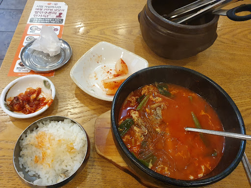 출장와서 배가 출충한차에 혼자서 밥을 먹으려 밤 12시쯤 검색을하고 가본 음식점! 24시간 영업이기에 늦은 밤에도 이미 2테이블 정도 식사중이었다. 이 가게는 체인점인데도 남부지방에서 온 나는 한번도 들어보지 못한 가게였다. 메뉴판에 강추로 표시된 매운설렁탕을 주문했으며 매운설렁탕은 육계장과는 또 다른 매운 맛이 있었다. 처음 먹어본...