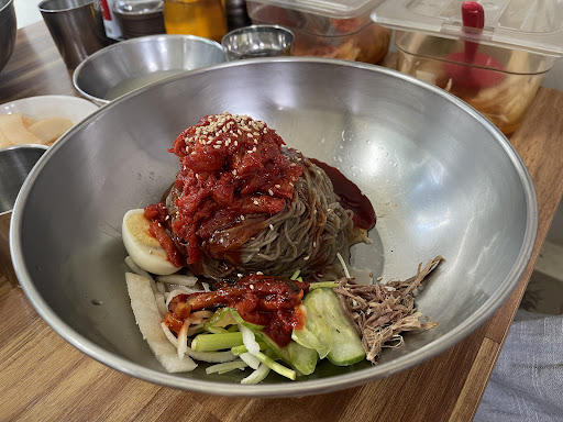 냉면육수로 맛 탐색을 한 후 면을 흡입합니다. 부족한 맛은 식초와 겨자로 맛을 냅니다. 메밀의 함유량이나 육수 맛으로 보아 입소문이 날만한 냉면집입니다. 육수를 싫어하는 분들을 제외하고 모든 분들이 만족할 만...