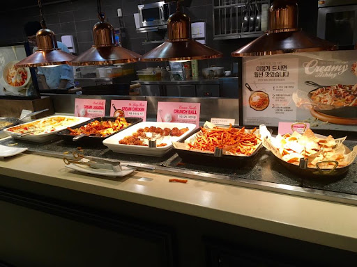 까르보떡볶이도 좋았습니다 피자는 배불러서 못먹었구요. 고기류는 조금 냄새가 났구요. 탕수육이나 볶음밥류 쏘쏘.. 스테이크포함이였는데 스테이크도 육질이 다소 질긴 느낌이 있으나 개별주문품목이라 그나마 나았던듯합니다.