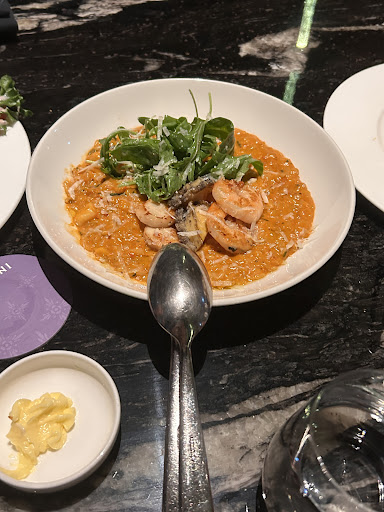 Very good food. I had the seafood risotto and my mother had the short beef ribs it was very delicious and very memorable. Then they brought us surprise dessert for my birthday and graduation with a candle, they were very sweet to bring a free small dessert (baked Alaska) since we were already full. They all were kind and patient, the music wasn’t too loud and the atmosphere was very peaceful. We definitely would come back for the...