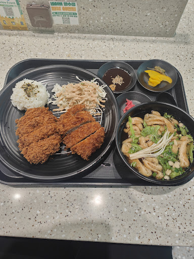 I recently had a great dining experience at Mukyoku in Incheon Airport’s Terminal 1. The restaurant is conveniently open 24 hours, which is perfect for travelers with odd flight times. We ordered the tonkatsu and shrimp set, and the presentation was impressive—crispy, golden tonkatsu with tender meat, and juicy, perfectly breaded shrimp. Both were served with fresh salad, rice, and miso soup, making it a satisfying and balanced meal.