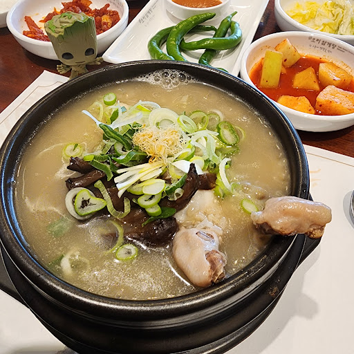 Read moreThis store is really great. Turn right on the second floor and walk to the very corner. The store is very clean overall. I ordered mung bean and ginseng chicken. The meal is chicken soup, so it will take a while to be served. After ordering The waiter will first serve side dishes including spicy radish cubes, kimchi, pickled onions, pickled cucumbers, small green peppers, two plates of sauces, and ginseng wine. The small green peppers are suitable for dipping into red sauce. They taste quite refreshing, and the ginseng wine tastes great. It's very refreshing to drink it gently and in small sips. After the ginseng chicken is served, the soup tastes quite soft, glutinous and sweet. It contains mung beans, rice, chestnuts, and red dates. The chicken has a light chicken flavor. If the taste is too bland, you can dip it in the white seasoning powder on the side to enhance the taste. It will become much heavier. Overall, it's a store...