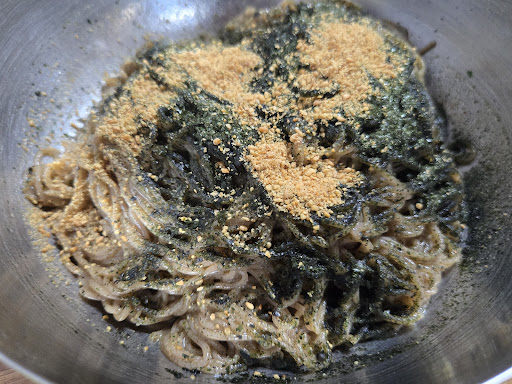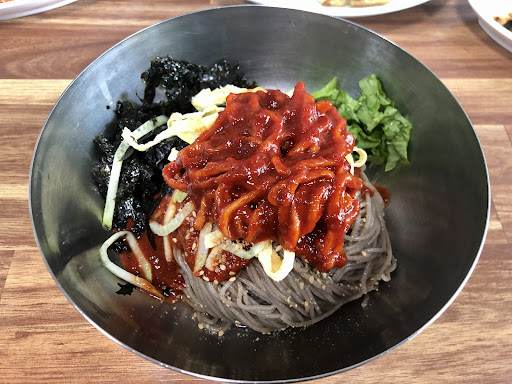 This place was bustling on a Sunday before noon. We ordered the 들기름마쿡수 -perilla oil noodles which came dusted with lots of sesame seeds and seaweed powder - if you don't pour on the optional broth it's friendly to vegans and vegetarians - and a potato pancake 감자전 -both were delicious and the food was out within minutes. The staff are kind. I would definitely recommend this place to any hungry traveler. It's a less than 10 minutes walk to the...
