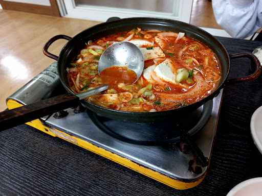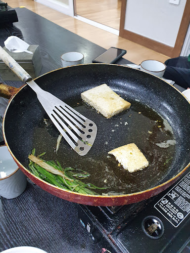 맛집의 옆집입니다. 원래는 옆에 시골순두부라는 맛집에 가려다가 문을 닫은 관계로 이곳에 오게 되었습니다. 하지만 전혀 아쉽지 않게 너무나도 맛있었습니다. 두부가 일단 고소하고 맛있으니 요리가 맛이 없을 수 없습니다. 저는 두부전골 2인분을 주문해 먹어봤는데 두부랑 야채만 들어간 전골에서 이렇게 깊은 맛이 나다니... 하면서 놀랐습니다. 국물이 적당하게 칼칼해서 밥이 끝없이 들어가게 되는 구조입니다. 양념장이 사기템인거 같기도 하고... 여튼 국물 한 숟갈 먹고 감탄하며 밥 한 숟갈 먹고 그러다 두부 한 조각 먹으면 고소하면서 매운 맛을 중화시켜주고... 무한 반복입니다. 전골만 해도 충분히 배불러서 두부구이까지는 못 먹어 봤지만 옆 테이블에서 들기름에 두부 부치는 냄새만...