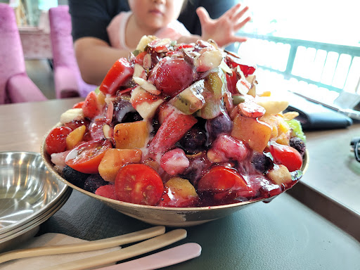 과일 팥빙수 먹었어요.