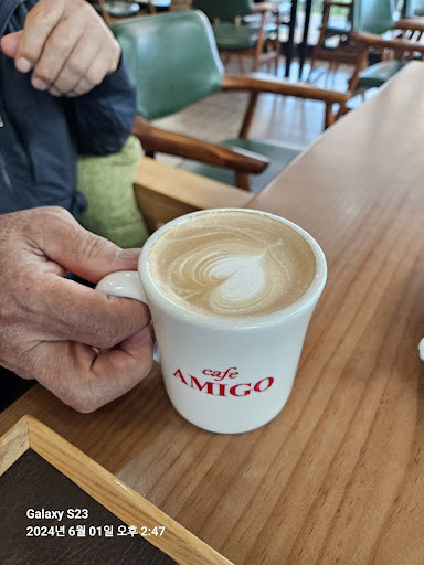현지인맛집같은 느낌의 카페에요.비교적 저렴한 가격의 커피와 직접 길러서 만들어주시는 텃밭차도 먹을 만 합니다.베이커리카페는 아니지만 단팥빵을 직접 만드시는지 맛있어요.커피맛은 쏘쏘.시그니처메뉴인 아미고주스가 달달하니 좋아요.분위기는 7080느낌....