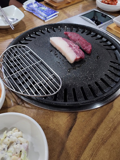 We were both so impressed with the server's English, which was far better than any other fast food restaurant we'd encountered in Jeju. He was so knowledgeable about horse meat and patiently explained its benefits and recommended cooking it medium rare. It was our first time trying horse meat, and it was incredible. It honestly tasted like beef, and we wouldn't have known the difference if we hadn't been told. The abalone was also amazing. It is so fresh and perfectly cooked. We loved the kimchi soup, side dishes, and everything else was flavorful and delicious.