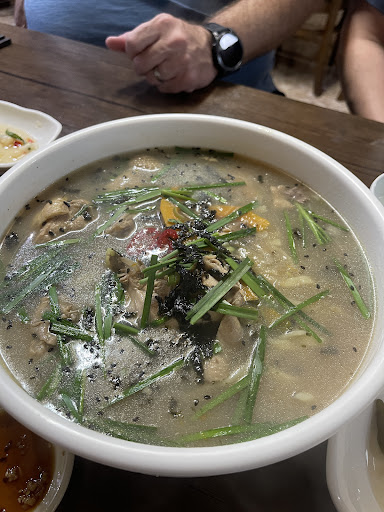 We stumbled on this homey restaurant when we were hungry and the owner was so welcoming. He spoke a little English and explained the small menu to us - chicken pot noodle soup, mung bean pancake, mandu, cold soba. The chicken pot for 2 was huge, could have fed 3-4 people, but was very comforting and tasty. Pancake was crispy, mandu was large and filling and the cold soba was well made. The owner seemed to be a one man show, cooking and serving and cleaning. Yet he was a great host and very friendly....