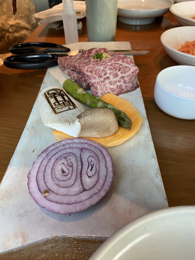 hanwoo beef very ex (prime rib ie galbi not best cut) tendonous, underwhelming & pricy.