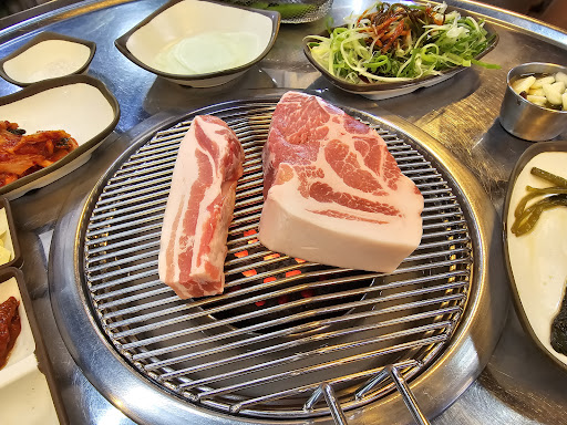연탄으로 고기를 굽는 집에서 나는 특유의 황 냄새가 안 나서 신기했는데 나갈 때 보니 빈 테이블에도 연탄불을 미리 피워 놓으신 걸 발견! 그러니까 냄새는 안 나는데 문제는 연탄의 그 풍미? 연탄맛?ㅋㅋㅋㅋㅋㅋ아 뭐라 표현을 못하겠는데ㅠㅠ 암튼 연탄으로 굽는 고기 특유의 구수하게 맛있는 냄새가 잘 안 난다고 느껴지긴 했지만! 그렇지만 그렇게 불을 사용하시기 때문에 가게에 황 냄새가 안 나고 옷에도 냄새가 배지 않는 것 같앗어요