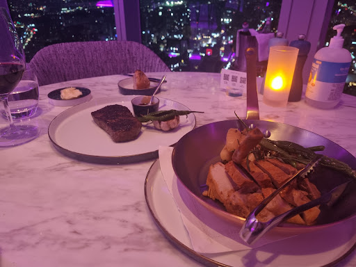 Read moreBeautiful building. Next level view. Crab cake was served as chunks of crab with breadcrumbs and very greasy. Black pork was heated in a plastic bag and dumped on the plate. The sear from the grill was non existent. The marinade was such that the flavor of the meat was gone. I wasn’t allowed to order with the waiter. So had to work the iPad on the table. I’m sorry but I work on those things all day. I’m just happy to be free from tech. Grabbed a cinnamon Apple crumble a few blocks down to end my evening with a positive note. And the side was perfect btw. Brussel...