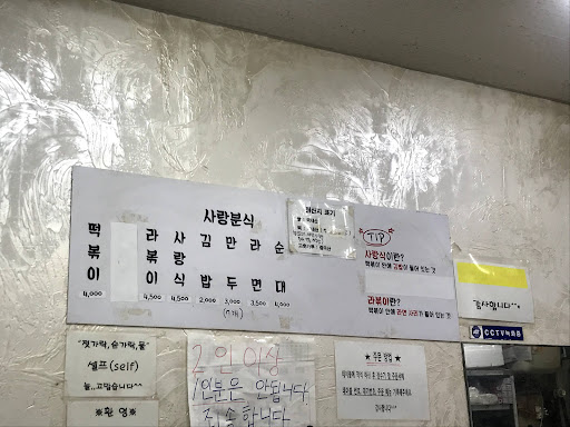 Read more동문시장 안에 있는 사랑분식!! 저도 검색해서 평점보구 간곳이에요ㅎ 점심시간에 가긴해서 ㅎ 대기 20분 정도 했어요. 대기 할때는 더웠지만 ㅜ 안에는 시원해요! 기다려서 먹을만 해여🤭 ㅎㅎ 떡뽁이 소스 완전 맛남!!!! 꼭 드세여!!! 사랑식, 순대, 만두 이렇게 시켜 먹었어요 (사랑식 , 순대를 현금으로 결재하면 만두는 서비스 라고 하셔서 그렇게 시켜먹음ㅎ) 김밥 안에는 단무지 오이 당근? 인가 무튼 딱 3개만 들었어요 ㅎ 떡볶이 찍어 먹으니 맛있네요 ㅎㅎ 근데 사랑분식은 떡이 좀 적게 나와여 ㅜ 떡뽁이만 따로 더 시켜 먹고 싶었어요 튀김도 만두튀김만 팔아요. 김말이나 야채튀김 그런거 없이 오로지 만두튀김만!!! 겉바삭하고 속재료 가득 찬 그런 튀김만두에요 ㅎ 안 찍어 먹을 수 없는 ,,!!! 순대는,,, 제 입맛에는 조금 별로였습니다. 부드럽고 쫀득한 순대식감이 아니라 퍽퍽한 식감이었어요 ㅜ 언제 기회가 된다면...