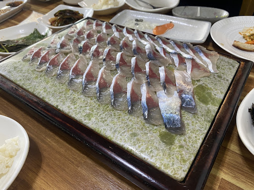 Read more4인 모둠 대. 완전 배부른 탁월한 선택. 평생 먹어본 고등어 회 중 최고. 삼치 회는 처음 먹어봤다. 이건 신세계. 너무 진짜 너무 맛있다. 반찬도 맛있다. 전복장은 야들야들. 하지만 새우장은 솔직히 그저 그랬다. 반찬으로 해삼 내장 실화였다. 모둠은 고등어, 삼치, 히라스, 참돔이었는데. 참돔이 제일 시시한 날이 오다니. 입에서 살살 녹는 삼치, 먹는 게 아쉬울 정도. 지리도 너무 맛있었다. 지나치게 맛있어서 배불러 버렸다. 고구마 튀김까지 맛있었다. 재방문 의사 379%...