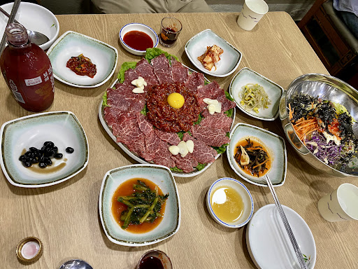 If you like beef tar tar, I can highly recommend this local restaurant. My husband and I ordered a small portion of raw beef plate (55000 won) and bibimbap (20000) The beef was really tender and matches perfectly with the pears. A beautiful lady with sweet smile was so kind to show us different ways of enjoying those food. It was a truly...
