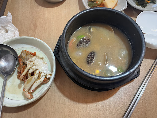 We didn't aim for a seafood restaurant at all, however, when we got there, we had to stay and try the sea urchin bibimbap (15 000 KRW as most of the 1 portion meals, 'shared meals' were about 60 000 KRW for about 4 people). It is supposed to be a secret local spot and it definetely had the atmosphere and very...