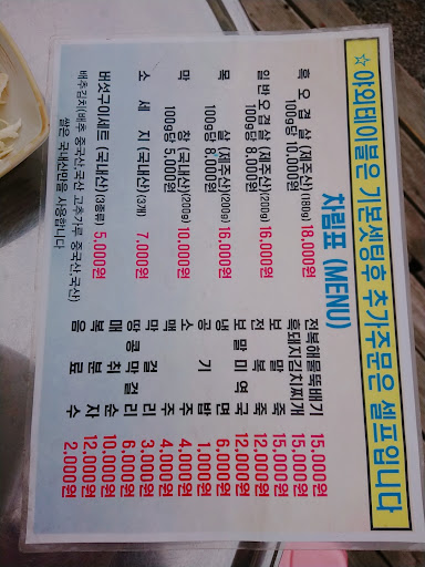 Read more최악,,여기만 가지마세요 제발 야외에 앉겠다니까 미적미적 불 피우고 고기 주더니 방치함 언제 올리고 그런 설명 일절 없고 그냥 알아서 구워먹으래,, 김치찌개는 딱 설탕고춧가루 때려넣은 맛 고기김치찌개에 고기 두덩이 찾음,,조그만걸로,, 마지막 결제가 가관인데 둘이서 68000원 나왔다는거; 일단 결제하고 다시 메뉴판보면서 계산해보니까 53000원,,,다시 가서 말하고 재결제함 모든 직원이 다 어,,아,,하면서 얼타고 김치찌개 4인분짜리 먹지않았냐고;; 아니 둘이 왔는데 먼 소리,,, 하여튼 진짜...