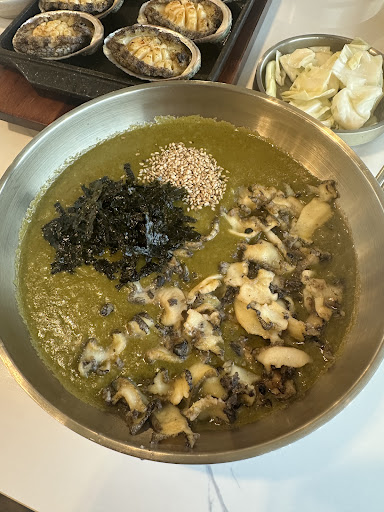 Read moreWas informed that you should never leave Jeju without trying abalone porridge. Hi Abalone is near to the airport. The restaurant is very spacious and modern looking. It overlooks the airport runway and has a beautiful piece of garden next to it. We ordered the combo set for 2, priced at 64,000 KRW. It consists of an abalone porridge, avacado bibimbap and 10 pcs of grilled abalone. The porridge is thick, green with a creamy texture. I only wish it could be saltier. The bibimbap is perfect, I never knew that avacado could go so well in it. Overall a good meal and we enjoyed it. Order was made from our table via a pad and paid...