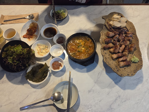 This small, unassuming hole-in-the-wall restaurant may not stand out at first glance, but the food here is truly excellent! The pork belly was amazing—softer than usual, with a nice chewiness. The owner personally grills it for you, adding to the experience. While it’s not drastically different from regular pork belly, it’s definitely delicious.