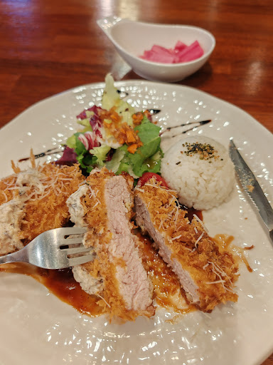 Read moreIt’s Disappointing. The cutlet is thick but dry, not as good as any regular size pork cutlet. “Carbonara”is made with bacon and cream😂. Sauce tastes salty and watery. They even have a dog lying on the counter in the kitchen. the woman is being rude . That probably explains why I was the only customer visiting during dinner time. To run a business,they may have a lot to improve right now. So I wouldn’t recommend it, especially when you’re...