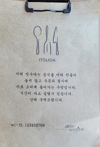 Read moreItsuda or idsooda on kakao/naver app. This place is jewel. The Food is so delicious. I have my dinner here for 3 nights. Signature jeju black pig tonkatsu steak is a must have. Thick and so tender. Next is Rose prawn pasta 👍👍👍. Leaving review in Google so more people can visit and this place can last till my next...