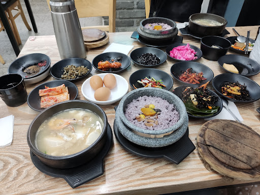 Read more돌솥밥에 순두부 찌개 나옴 다양한 반찬도 셀프로 추가로 먹을 먹을 수 있음 제주시에서 보통 음식점들 가성비 떨어지는데 이곳은 가성비도 좋고 맛도 괜찮았음 애들도 먹을 수 있게 하얀 순두부...