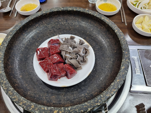 Read more그냥 한마디로 별거 없어요.. 전 불판땜에 별로,,, 맛은 구이를 먹어서 특별함은 못느꼈고 불판이 돌판이라 좋기는 한데 핏물이 눌러붙어 타버리면 탄흔적이 남아있고 불판을 갈면 달구는 시간도 걸리고 구이를 먹어서 맛은 거기서 거기고 그냥 특출함을 못느꼈으나 옆의 돼지고기잡아 유명하다보니 손님이 많은것같은.. 나도 돼지먹으러갔다가...