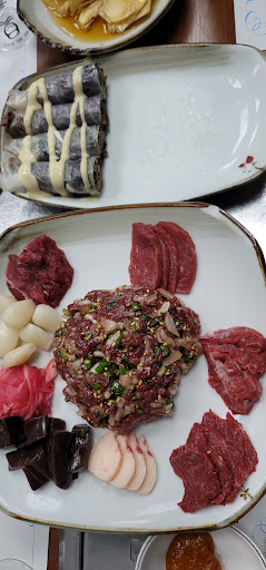 Mt first experience with horse meat! Honestly, we were scared of horse raw meat but it was actually pretty good, better than raw beef Ive had before in korea. I would recommend this place if you want to try out...
