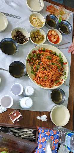 강풍주의보가 발령된 날이었지만 전부터 방문해보고싶던 곳이라 왔음. 회국수&모둠물회를 주문했고, 대존맛탱이었음😢 식사,카페,다시 식사 코스로 온곳이라 배터지기 일보직전이었음에도 끝까지 숟가락을 놓을 수 없었음😳 회국수는 상추 및 야채+흰살생선+쫄면+초고추장 조합이었고, 매운것 못먹어서 요청드리자 초고추장 소스를 섞지 않고 알아서 양조절할 수 있도록 따로 담아주심. 그리고 이모님께 회국수와 모둠물회의 차이가 뭔지 여쭤봤었는데 모둠물회는 회보다는 소라, 오징어, 한치, 멍게, 전복 등 해산물이 들어간다고 하셨음. 일반 물회보다 더 존맛..😳✨😳 특히 광어같은 흰살생선보다 해산물을 더 좋아하시는분께 추천👍 기본 밑반찬은 미역국, 콩나물, 무생채, 톳(?)무침이었음. 참고로 콘센트 있는 자리는 입구에서 바로 직진해서 보이는 첫번째 창가자리❣ 그리고 창가자리들은 바다가 한눈에 보이는 뷰맛집이기도 함. 겨울이라 웨이팅 없이 들어갔지 여름이면 웨이팅 엄청 길거 같음. 주차장 넓은 편. 제주도 물가가 높은편이기도하고 여행지임을 고려했을때 해녀촌 가격은 나쁘지 않다고 생각됨....