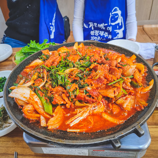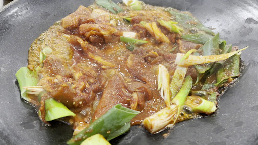 Read more두루치기와 주물럭의 차이점. 두루치기는 서빙 직전 양념하여 내 놓은 것이고 주물럭은 양념에 고기를 재워 두었다가 내 놓은 것이라고 합니다. 사장님의 주장이라서 신빙성은 있으나 지방마다 판단하는 기준이 다르기 떄문에 정확하지는 않습니다. 다만 가시식당의 경우 두루치기라고 하는데 진짜 사장님이 바로 고기를 썬다음 양념을 합니다. 일단 증거가 있으니 반박은 할 수 없는 상황인데 더 확인해 보고 알려드리도록 하겠습니다. 그래서 두루치기와 주물럭은 맛의 차이가 많이 납니다. 두루치기가 약간 가벼운 스타일이기는 하나 고기의 향이 잘 느껴지고요, 주물럭은 고기의 향보다는 양념맛이 더 잘 느껴집니다. 그래서 나중에 밥을 비벼먹기는 주물럭이 훨씬 좋습니다. 왜냐하면 양념에 고기의 육즙이 많이 배어 있거든요. 제주는 워낙 돼지고기가 맛이 좋아서 이런곳에서 주물럭을 먹어 보는 것도 별미입니다. 돼지 주물럭이 어느정도 익으면 한치 주물럭을 올려서 익혀줍니다. 역시 깻잎이 들어가니까 향이 확 퍼지네요. 전체적으로 조금 강한 맛입니다. 이 집에서 주물럭을 먹는 방법은 두가지가 있습니다. 하나는 바로 공기밥을 시켜서 주물럭과 먹는 방법이구요. 다른 하나는 주물럭에 들어가 돼지고기와 한치를 쌈을 싸서 먼저 먹고 나중에 밥을 비벼먹는 것입니다. 모두 밥을 비벼먹고 있네요. 아니면 공기밥은 하나만 주문해서 드시고 나중에 밥을 비벼드셔도 됩니다. 그런데 일단 드셔보시면 워낙 양념맛이 진해서 비벼드시는 쪽으로...