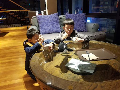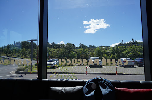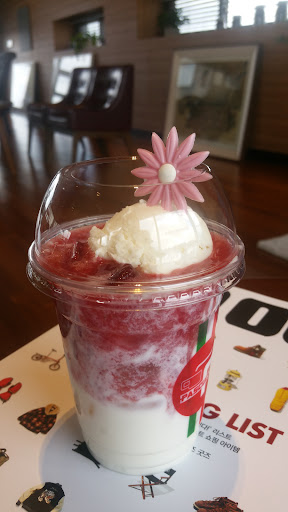 Read more사방이 통창으로 되어있어 제주 산풍경을 바로 볼수있는 카페. 신발을 벗고 올라가야하는 2,3층은 원목 인테리어의 갤러리임. 3층은 코로나로 운영중지 상태. 2층에서는 바다풍경도 감상 가능. 흔한 프렌차이즈 카페이지만 제주 특성상 10시이후 오픈하는 카페가 대부분인데 7-21시까지 운영해서...