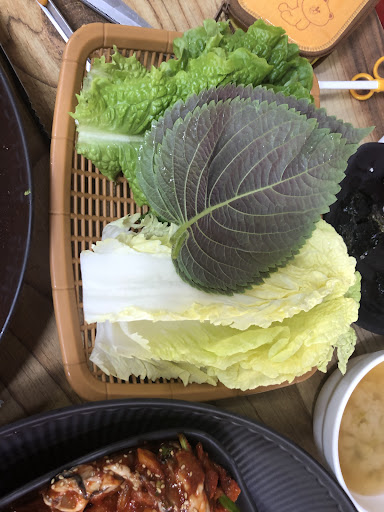 We had the jokbal (boiled pork trotter), it came with two types of kimchi - sooooo yummy. You can also eat it in a wrap with the lettuce or perilla leaf and ssamjang, also was really really good. The sujebi egg soup was a nice side too. The two of us struggled to finish it all, there was so much food. Soju pairs really nicely with this meal. The boss lady was very friendly, brought us an English menu too. If pork trotter is not your thing, you can order boiled pork belly....