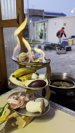 Read moreComplete tourist trap… maybe it’s better in the summer but in April it’s empty, the food is clearly not fresh (the salmon and abalone had a strong fishy smell) and the service is awful. The server just dropped off the food and never came back to check in. We needed more water and kimchi but had to walk over to the counter in the building to ask for more. The vibes are cool and the campfire is a nice touch but there were no skewers or rods to cook the marshmallows given in the 3 tier set. I think the reviews are good bc they offer a free cookie is you write a review. Jeju is full of great bbq places, skip this one and go to another one with better service...