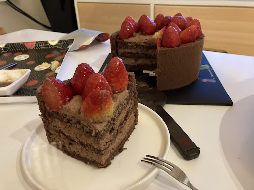 [PROS] Food is reasonable, and tastes okay. (mediocre) As it is place that advocates as a 'dessert cafe' (although the Cakes are mass produced and delivered), the food / cakes are okay (yet another 'mediocre') . Every seat is comfortable, and next to every seat/table, there is an outlet that let's all your electronic gadgets be charged. . Parking is very comfortable, - although it depends on the date, and time. I had little difficulty when it came to parking my car. . [CONS] The staff couldn't care less, and can be sometimes aggressive. They have literally blocked the cashier, and make customers pay at the machine. Which is uncomfortable in many occasions, because you reluctantly go to the machine to buy a cup of coffee, but in the just means you cannot use a coupon or as for my case cannot use Applepay, and so, you have to return to the uncomfortable and unkind cashier, to repeat the order. . The staff rarely, if ever, clean the tables, unless specifically asked. The tables are sticky and filthy. . The inside of the coffee shop is hot, in summer and cold in the winter. Very stingy. I had to ask on 4 different occasions to up the heat, or turn on the air conditioning. . The way they clean the bathroom is just, too much. They just spread / pour water all around the floor, which makes it extremely slippery, especially because it isn't thoroughly cleaned beforehand. . The condiment table has no condiments (I am not joking) . But to make everything worse, is the attitude of everyone working. They seem annoyed when called for, and acts aggressively when asked for favors - such as 'could you turn on the air conditioning' or ' Can I have a fork for cake' et cetra . [All in all] The reasons I come here is because,